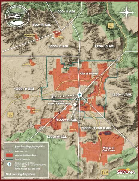 - Adapted takeoff and departure routes from Sedona’s one-runway, non-towered airport atop a west Sedona mesa help reduce perceived noise.