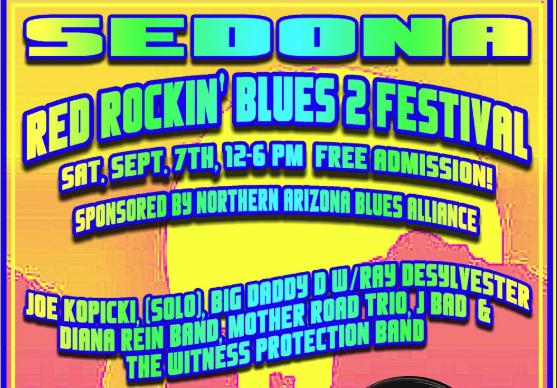 The Northern Arizona Blues Alliance (NAZBA) presents the Sedona Red Rockin’ Blues Festival, September 6 and 7! Friday night features two premier blues solo artists at the Mary Fisher Theater at 7:00 p.m. (ticketed). Saturday from noon to 6:00 p.m. at the Posse Grounds Amphitheater in Sedona will feature a FREE outdoor festival with five acts.
