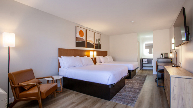 This newly renovated hotel has beautiful rooms and mini-suites with outstanding views of the red rocks. The shaded seating deck with fire tables, view patios and heated pool make outdoor time more enjoyable. Easy walking distance to shopping, galleries and restaurants make this a great home away from home destination. Pet Friendly rooms available. Continental breakfast served daily in the new lobby with coffee and tea service all day.